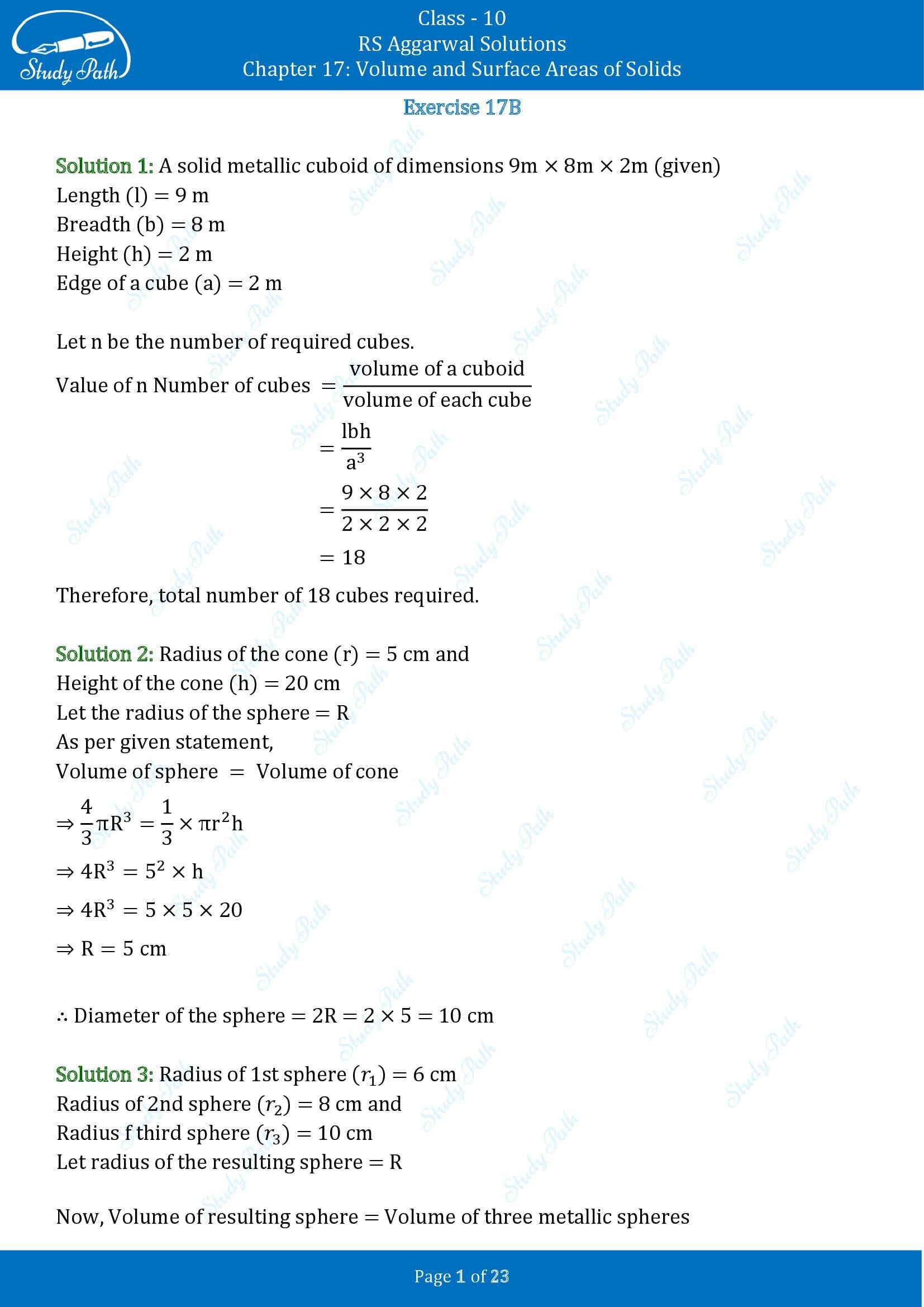 RS Aggarwal Solutions for Class 10 Chapter 17 Exercise 17B Volume and Surface Areas of Solids are provided here. These solutions are solved step-by-step by expert teachers to help the students in their exam preparation. We have solved the questions provided in latest edition of RS Aggarwal Class 10 book as it contains relevant questions framed as per the CBSE syllabus. Practicing these questions and answers regularly will help students build a strong foundation and achieve excellent marks in their Class 10 board exams.