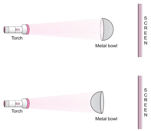 Answer: When a beam of light shines on an opaque object, some light rays are stopped and some pass by the edges. The region without light formed behind the object is called shadow.
