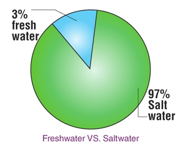 Out of 71% of the water on earth, 97% is the water from oceans and seas. Water from oceans and seas contains dissolved salts in it, hence this water is called saltwater or saline water.