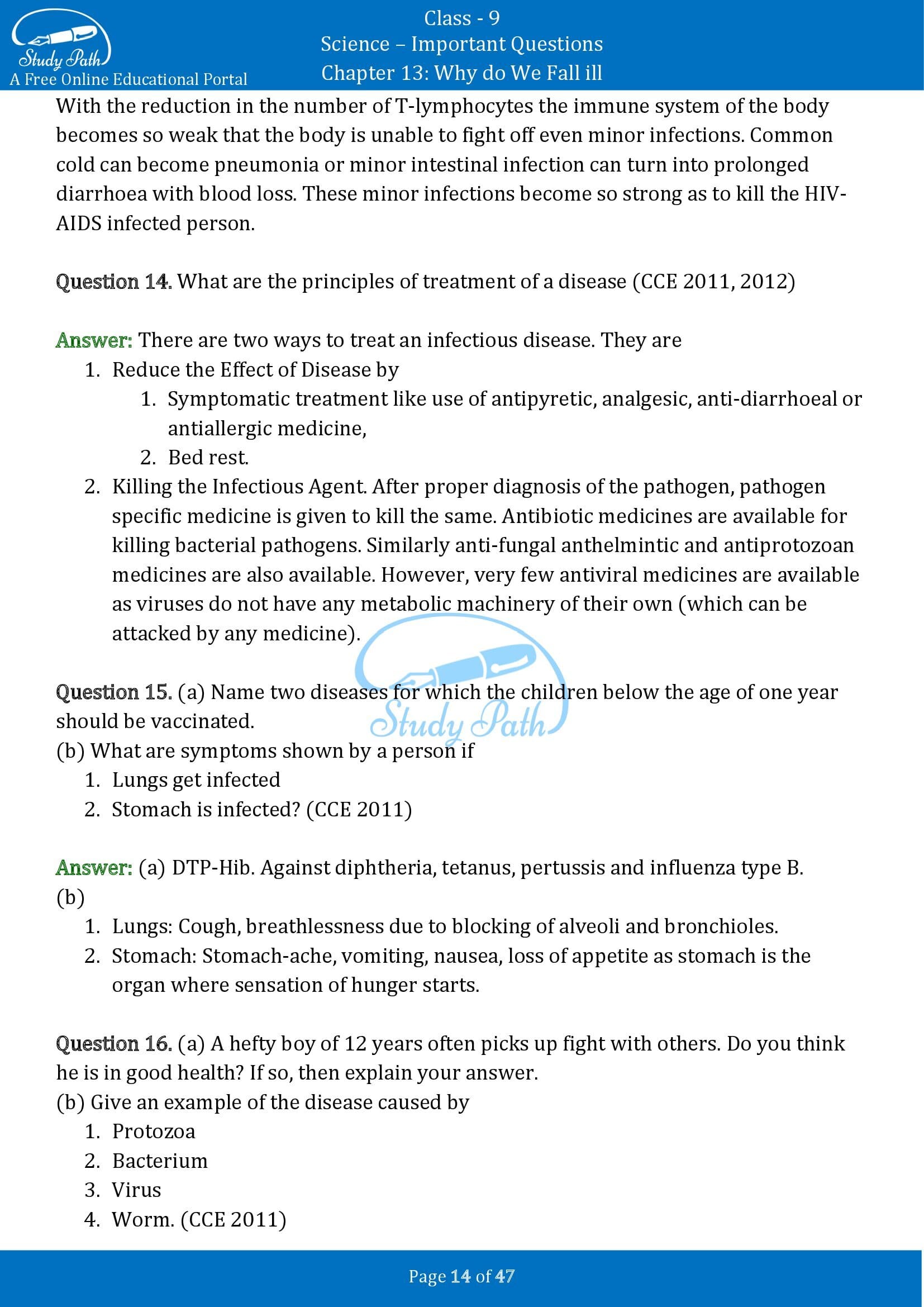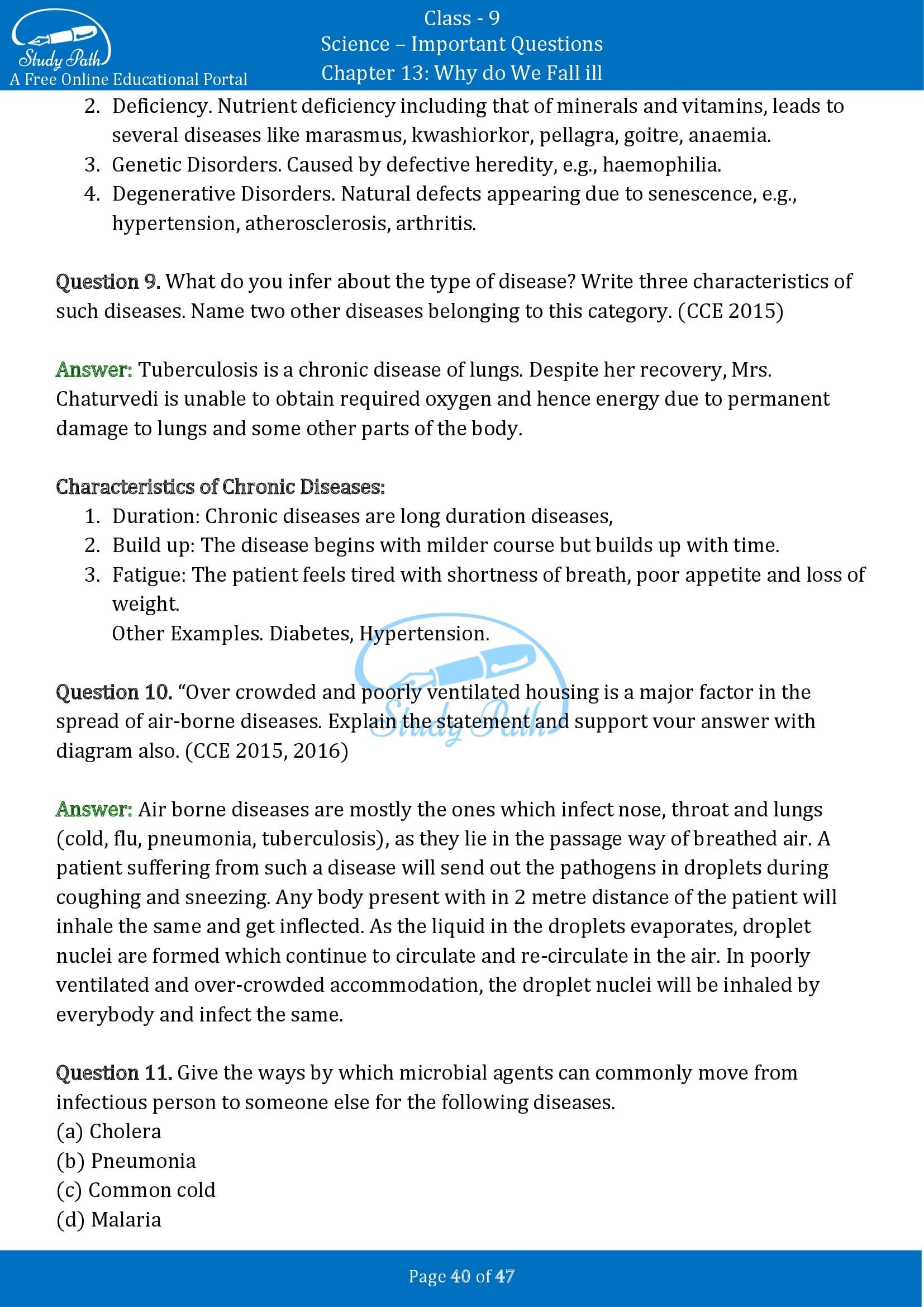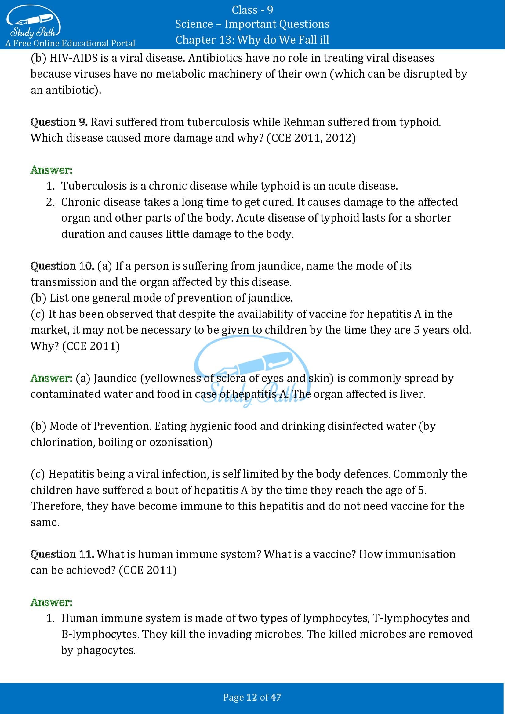 Get important questions for Class 9 Science Chapter 13 Why Do We Fall ill with PDF. Our subject expert prepared these important questions and answers as per the latest NCERT textbook. These important questions will be helpful to revise the important topics and concepts. You can easily download all the questions and answers in PDF format from our app.