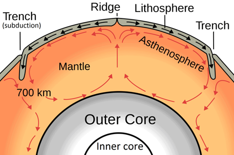 The movement of these plates due to convection currents results in the building up of stresses within the plates and continental rocks above. This leads to folding, faulting and volcanic activity along the zones of maximum stress, i.e., mostly along the margins of the plates. Earthquake and volcanic activity are maximum here.