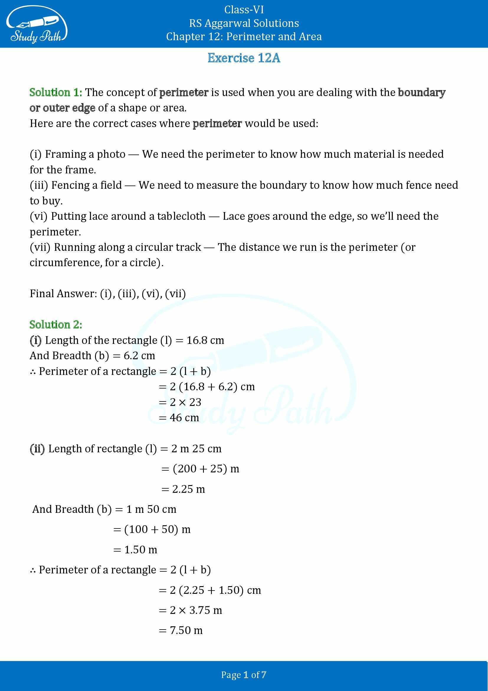 RS Aggarwal Solutions Class 6 Chapter 12 Perimeter and Area Exercise 12A 00001
