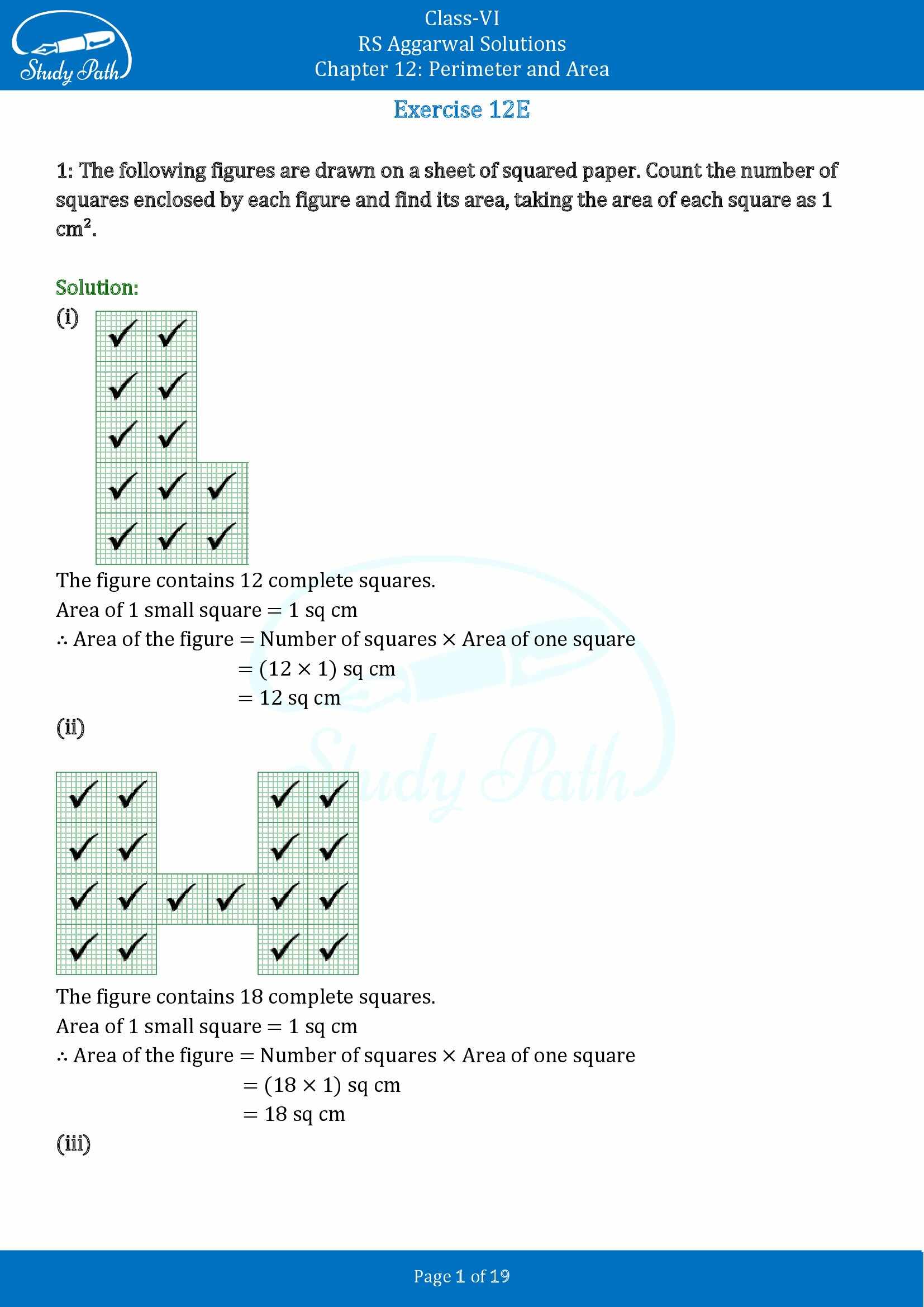 RS Aggarwal Class 6 Maths Solutions for Chapter 12 Perimeter and Area Exercise 12E are provided here. These solutions have been prepared by expert teachers as per the questions given in the latest edition of the RS Aggarwal book. The answers to the questions are explained in detail to help students with their exam preparation. We at Study Path emphesized on the fundamentals and explained each question in the simplest way possible. Our RS Aggarwal Solutions for Class 6 help students complete their homework and revise the entire syllabus.