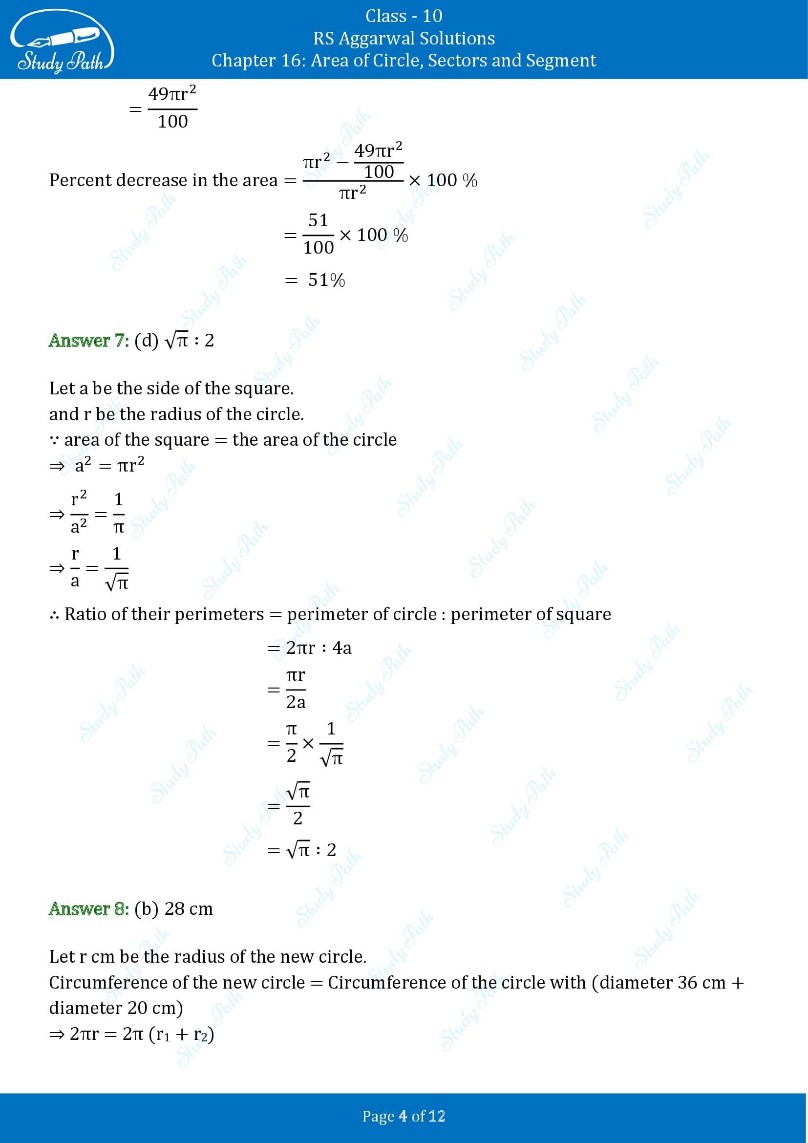 RS Aggarwal Solutions for Class 10 Chapter 16 Multiple Choice Questions (MCQs) Area of Circle, Sector and Segment are provided here. These solutions are solved step-by-step by expert teachers to help the students in their exam preparation. We have solved the questions provided in latest edition of RS Aggarwal Class 10 book as it contains relevant questions framed as per the CBSE syllabus. Practicing these questions and answers regularly will help students build a strong foundation and achieve excellent marks in their Class 10 board exams.