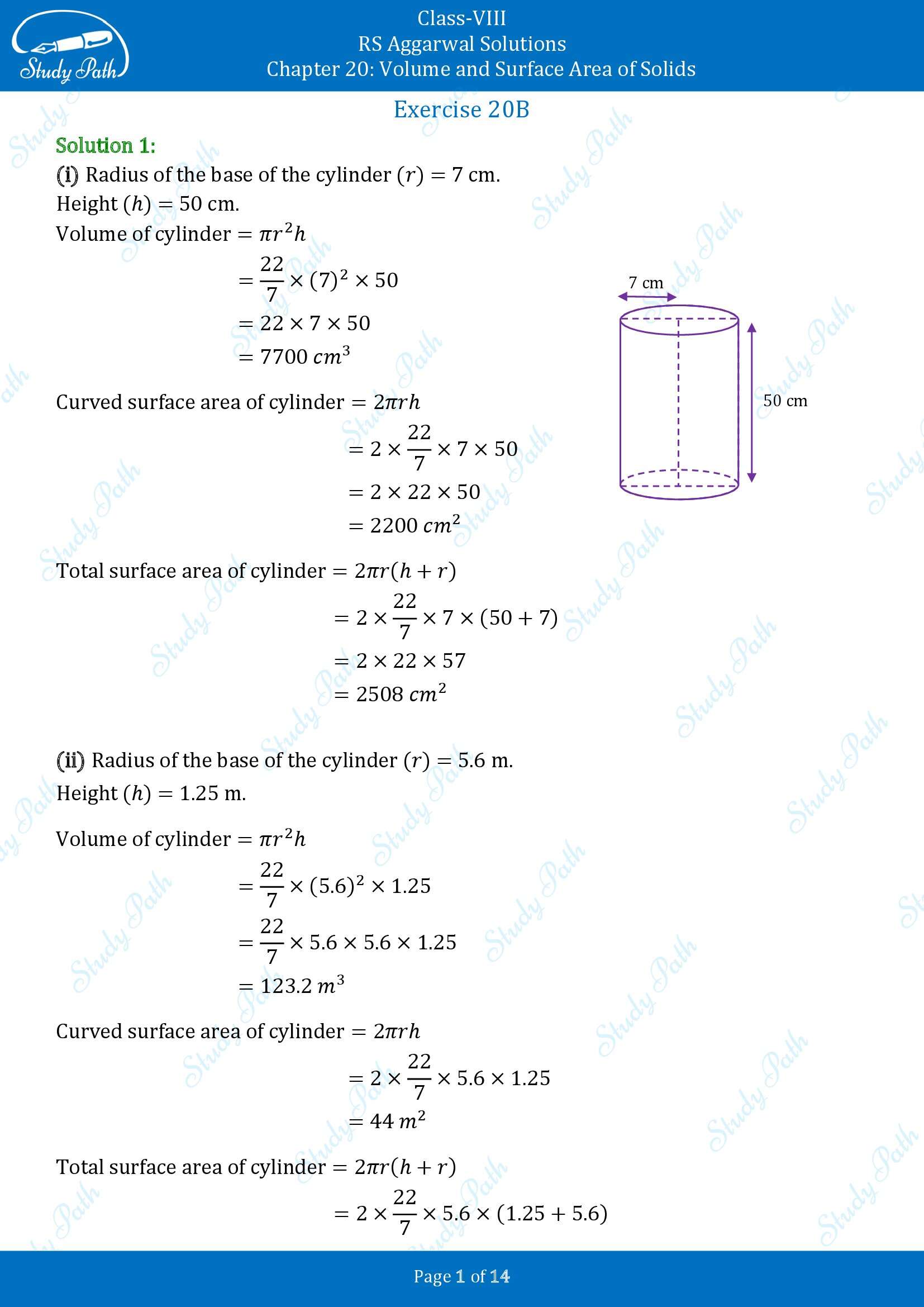 Get Latest Edition of RS Aggarwal Solutions Class 8 Chapter 20 Volume and Surface Area of Solids Exercise 20B. Volume and Surface Area of Solids RS Aggarwal Class 8 Maths Solutions help you to revise the complete syllabus and score excellent marks.